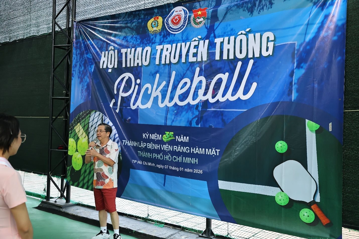 Phát biểu tại Lễ khai mạc môn Pikle ball, Ths BS.CKII Nguyễn Đức Minh – Bí thư Đảng ủy, Giám đốc Bệnh viện Răng Hàm Mặt TP, Trưởng Ban Tổ chức Hội thao nhấn mạnh: “Hội thao Bệnh viện Răng Hàm Mặt TP năm 2026 là hoạt động chào mừng Xuân mới 2026 và Lễ kỷ niệm 35 năm thành lập Bệnh viện Răng Hàm Mặt TPHCM (18/01/1991 – 18/01/2026), đồng thời hưởng ứng cuộc vận động “Toàn dân rèn luyện thân thể theo gương Bác Hồ vĩ đại”, khỏe để phục vụ, chăm sóc tốt cho sức khỏe răng miệng của Nhân dân. Qua đó, góp phần đẩy mạnh phong trào rèn luyện thân thể, thi đua yêu nước, tạo sự gắn kết giữa các đơn vị trong ngành răng hàm mặt, tạo sân chơi bổ ích để cán bộ, viên chức và người lao động được giao lưu, học hỏi lẫn nhau”.